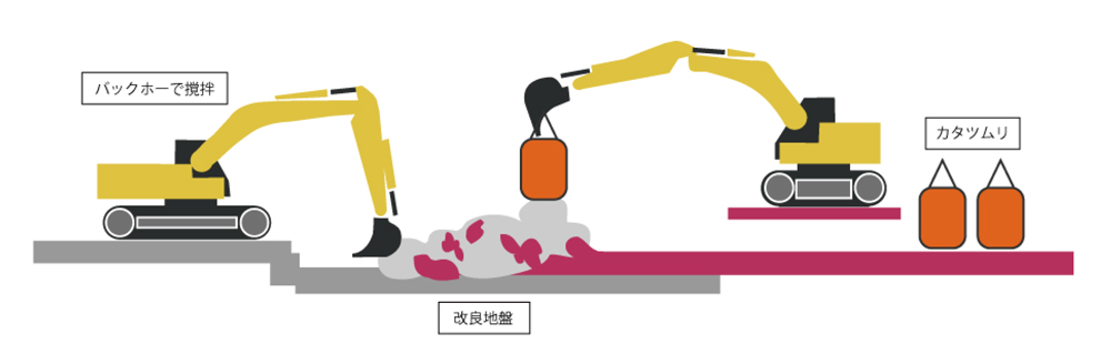 - ※施工性を考慮しバックホウのバケットは、対象土により選択