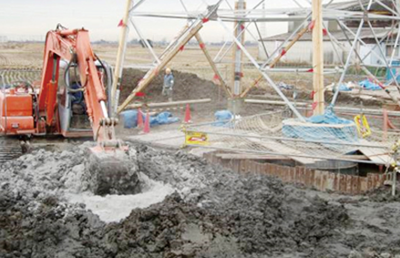 この工法はまた、さまざまな土質に対し各材料の配合比を変更することにより、その対象土に合った配合比を決定し、より経済的に、なおかつニーズに合った固化材を提供できます