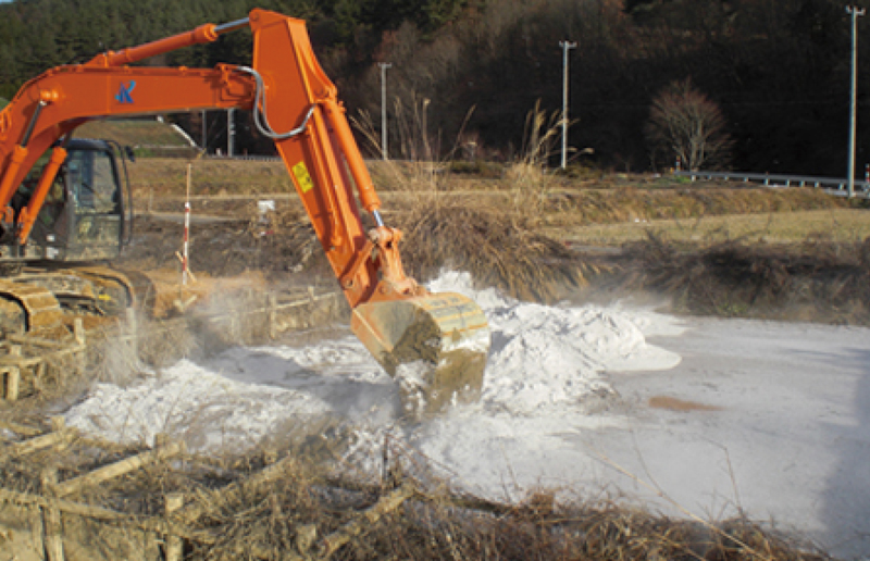 建設残土、建設泥土、高含水有機質土及び河川・湖沼等の浚渫土を再利用するための無害で環境負荷も無い固化材の提供をコンセプトに開発しました。